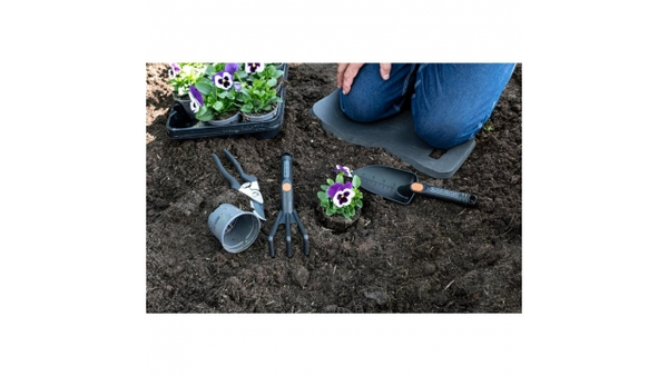 Black&Decker tuinset met kniematje, schepje, harkje en snoeischaar