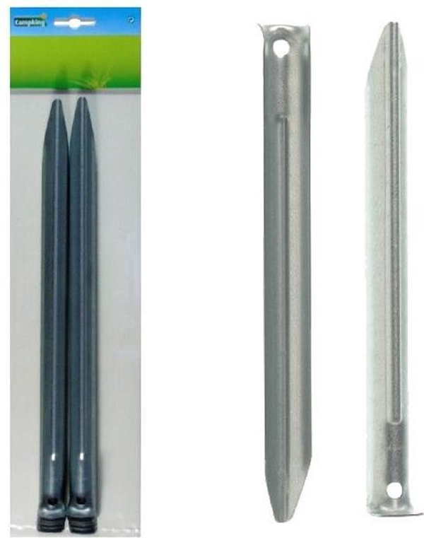 - De stalen tentharingen zijn vooral geschikt voor zachte kleibodems, heidegrond en weidegrond