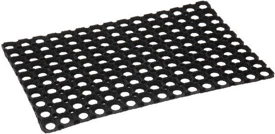Deze rubberen deurmat is voorzien van een klassiek ontwerp en schrapt het vuil. Zo blijft het meeste vuil in de mat hangen en blijft uw woning, tent of caravan schoon. De onderkant is voorzien van een anti-slip laag, zo blijft deze liggen op de grond en verschuift deze niet. Deze mat kan ook tegen water. Afmetingen: 60 x 40 cm.