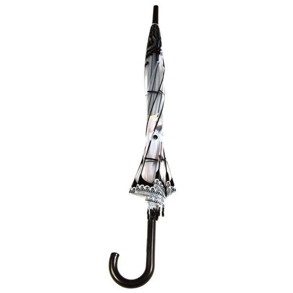 Blijf droog en schoon met de Esschert Design paraplu vogelkooi! Deze paraplu is gemaakt van een stevig stalen frame met 8 baleinen en een sterk skelet waardoor deze paraplu je hele lichaam beschermt, zelfs in een storm. Dankzij het mooie design met print van 4 vogels en een kooipatroon is de paraplu zowel functioneel als stijlvol. Met deze Esschert Design paraplu kan je heerlijk wandelen als het regent! Afmeting: 81 x 83,3 cm. Kleur: zwart/transparant.