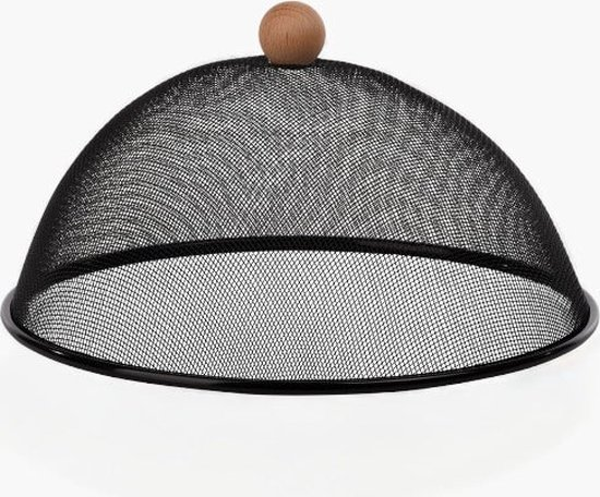Deze zwarte vliegenkap van Esschert Design beschermt het eten en drinken tegen opdringerige insecten. De vliegenkap is daarentegen niet geschikt voor bescherming tegen fruitvliegjes. De kap in maat Small heeft een trendy zwarte kleur en heeft een beukenhouten handvat. Afmeting: 30,1 x 30,1 x 16,3 cm.