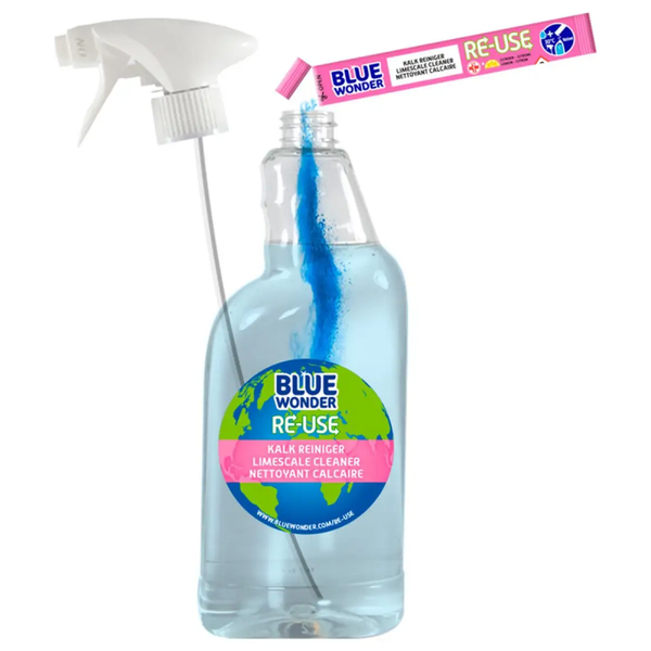 Ontdek de Blue Wonder Herbruikbare Sticks Kalk Reiniger. Krachtig tegen kalk, vegan en milieuvriendelijk. Hergebruik je flessen en maak duurzaam schoon!