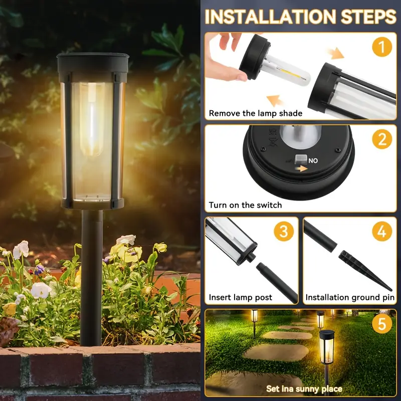 4x Zonne Tuinverlichting – Warm Wit Filamentlamp | IP54 Waterdicht | 12-14 Uur Licht | Automatisch Aan/Uit
