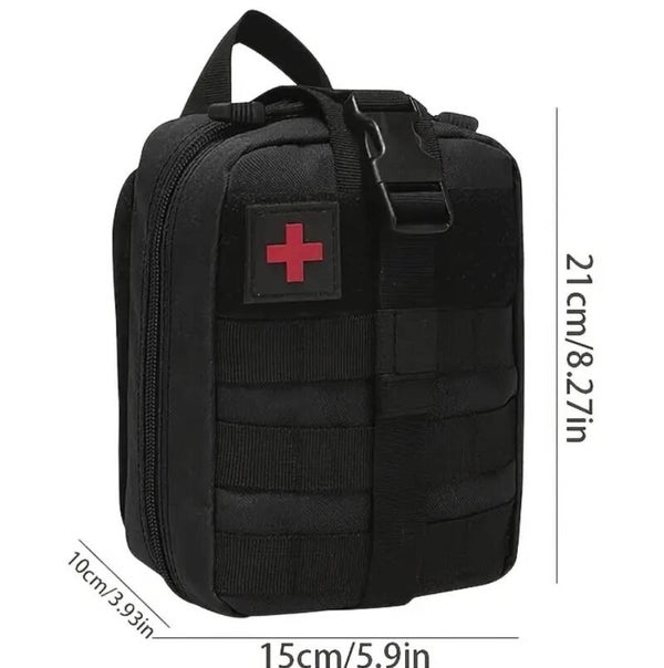 Deze 122-delige IFAK EHBO-kit biedt alle essentiële medische hulpmiddelen voor noodgevallen, waaronder een tourniquet, verbanden, schaar en spalk. Compact verpakt in een stevige tactische pouch met MOLLE-bevestiging, ideaal voor kamperen, wandelen, survival en andere outdooractiviteiten. Een complete en betrouwbare set voor snelle en effectieve eerste hulp.