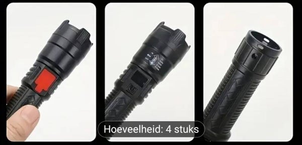 Set van 4 USB-Oplaadbare Survival Zaklampen – Compact, Krachtig & Betrouwbaar voor Noodzaken (15,3 cm)